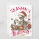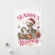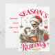 Un design festif et joyeux pour les fêtes de Noël met en vedette un squelette portant un chapeau de Père Noël, lisant un livre et tenant une tasse de café fumante. Autour de lui se trouvent des poinsettias, des baies de houx et des branches de pin. Le texte coloré dit : "Lectures de saison". Ce design est disponible sur une variété de produits, ce qui en fait le cadeau parfait pour les amateurs de livres.