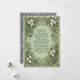 Cette belle bénédiction irlandaise présente une bordure de trèfle celtique orné dans des tons doux de vert, créant une pièce élégante et sincère. La bénédiction, remplie de vœux d'amour, de rires et de bonne fortune, est parfaite pour célébrer l'héritage irlandais ou envoyer des sentiments chaleureux aux êtres chers. Idéal pour la Saint-Patrick, les cadeaux de pendaison de crémaillère, ou comme pièce décorative pour inspirer et égayer n'importe quel espace. Les détails complexes et les motifs traditionnels font de ceci un souvenir intemporel pour quiconque chérit la culture irlandaise et les bénédictions significatives.