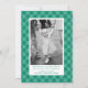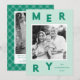 Envoyez des salutations de vacances élégantes avec ce carte photo de lettres Joyeuses moderne en menthe et vert. Le mot "Joyeux" est parsemé de lettres vertes en gras sur le dessus et le bas du design, avec votre photo de famille préférée encadrée en blanc au centre. Personnalisez avec votre nom et l'année pour une touche de saison tendance. L'arrière comprend de l'espace pour une deuxième photo, votre message de vacances personnalisé, et vos noms sur un motif plaid vert et blanc. Coordonné avec la collection complète Modern Merry Letters vacances.