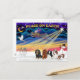 Le soleil se lève et révèle trois hommes sages, une colombe de Noël et cinq rois Cavalier Charles Spaniels. Les mots disent Paix sur Terre. Un merveilleux message de Noël qui inclut aussi votre chien dans la célébration de la saison.