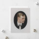 Un portrait montre un homme en costume avec des cheveux peignés, en regardant sur le côté. L'image est placée dans un cadre ovale sur un arrière - plan simple.