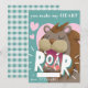 Illustration d'un lion ouvrant sa bouche large ouverte. Le texte dit "tu fais mon COEUR ROAR." Il y a des coeurs roses dans l'arrière - plan. Vous pouvez faire ajouter le nom de votre enfant en bas. Fait pour que les enfants donnent à l'école le jour de la Saint-Valentin. Illustration et dessin originaux de Namibear Art Studio.©Namibear