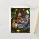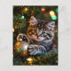 A sweet Christmas postcard with a little kitten playing with a gold ornament on the Christmas tree. On the back you can add your own personalized message or leave the cute cat puns that are there.