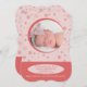 Un doux faire-part de naissance photo pour présenter votre petit. De délicats flocons de neige et une fenêtre photo ronde aux couleurs rose et baies créent le design. (FP)
