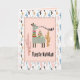 Amusant Adorable Llama avec des cadeaux de Noël sur son dos - Fleece Navidad Llama Christmas Card - une écharpe vêtue de lama avec des cadeaux sur son dos, entourée de cactus du Saguaro décorés d'ornements dans un cadre de broussaille du sud-ouest - tout cela entouré d'un motif de cactus aux couleurs pastel du sud-ouest - Customiser le message intérieur et la signature.