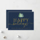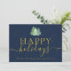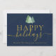 Business Logo Happy Holidays marine bleu et or Greeting Card minimalist Watercolor Snowy Christmas Trees Envoyez des voeux de vacances chaleureux et professionnels avec ce script élégant Happy Holidays carte de voeux d'affaires, avec des aquarelles originales de l'artiste Catherine Sweetman. Le design présente trois sapins boisés peints à la main dans un cadre hivernal serein, jumelé à la typographie moderne et à l'écriture dorée fantaisiste et élégante et à la typographie moderne pour un look festif et poli. Parfait pour les entreprises, les organisations ou les professionnels, cette carte de vacances festive personnalisée marine et or vous permet d'ajouter le logo, le nom ou le message personnel de votre entreprise, créant un accueil élégant pour les clients, les collègues et les partenaires. Mélange sophistiqué de charme artistique et d'élégance d'entreprise, cette carte est idéale pour diffuser la bonne volonté et renforcer les connexions pendant la période des fêtes.