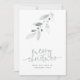 Logo d'affaires Feuille moderne Script Joyeux Noël Carte Plat. Style contemporain avec beaucoup d'espace blanc, Joyeux Noël est dans un élégant script set et le reste du texte de chaque côté vous pouvez facilement personnaliser, Au dos remplacer l'exemple d'image avec votre logo d'entreprise ou supprimer si préféré. Une flèche artistique de feuillage blanc et bleu poudreux d'hiver est sur le devant au sommet et coordination bleu poudreux à l'arrière. Les couleurs du texte et de l'arrière - plan peuvent être modifiées si vous souhaitez mieux adapter votre image et votre image de marque via l'option customiser plus loin.