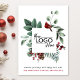 Elégante carte de voeux de Noël d'affaires avec le logo de votre entreprise encadrée par une aquarelle d'un cardinal rouge et une verdure hivernale saisonnière. Personnalisez votre salutation ainsi que votre nom dans une simple typographie rouge et blanc. Au verso, ajoutez un message supplémentaire d'appréciation du client et entrez votre adresse de site Web pour créer un code QR numérisable.