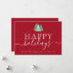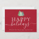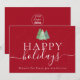 Business Logo Happy Holidays Red Greeting Card minimalist Watercolor Snowy Christmas Trees Envoyez des voeux de vacances chaleureux et professionnels avec ce script élégant Happy Holidays carte de voeux d'affaires, avec des aquarelles originales de l'artiste Catherine Sweetman. Le design présente trois sapins boisés peints à la main dans un cadre hivernal serein, jumelé à une typographie moderne et à un script blanc immaculé pour un look festif mais poli. Parfait pour les entreprises, les organisations ou les professionnels, cette carte de vacances festive personnalisable vous permet d'ajouter le logo, le nom ou le message personnel de votre entreprise, en créant un accueil élégant pour les clients, les collègues et les partenaires. Mélange sophistiqué de charme artistique et d'élégance d'entreprise, cette carte est idéale pour diffuser la bonne volonté et renforcer les connexions pendant la période des fêtes.