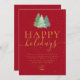 Aquarelle entreprise d'arbres festifs Logo rouge et or Business Holiday Card - Aquarelle Forêt de pins de bois Rouge et or Design Partagez des voeux chaleureux de vacances avec des clients, des collègues et des partenaires d'affaires avec ce Modèle polyvalent de carte de Noël d'entreprise, avec des aquarelles originales de l'artiste Catherine Sweetman. L'élégant design minimaliste met en valeur une forêt de pins et de sapins enneigés, associée à un script doré et à une typographie moderne sur un arrière - plan rouge de noël, créant un look professionnel et festif. Personnalisez-le avec le logo, le nom ou le message saisonnier de votre entreprise afin de le rendre vraiment unique. Avec tous les détails clés magnifiquement affichés sur le devant de la carte, ce design fonctionne parfaitement à la fois comme une carte à plat imprimable et comme un téléchargement numérique, vous donnant la flexibilité dans la façon dont vous partagez vos salutations de vacances. Idéale pour les entreprises à la recherche d'une façon soignée et élégante de se connecter, cette carte de Noël d'entreprise personnalisable allie art et design moderne pour une impression mémorable pendant la saison festive.
