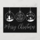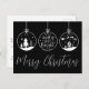 Elégant Personnalisable Moderne Simple Noir Et Blanc Ornements d'affaires Noël Carte postale de Noël. Une carte de Noël parfaite pour les entreprises à envoyer. Comprend 3 ornements, dont un avec "Joyeux et lumineux" au centre. Ajoutez votre logo pour en faire votre propre logo. Une carte postale simple et amusante pour les marques d'entreprise, les petites entreprises, ou les particuliers comme les maquilleurs, les esthéticiens, les coiffeurs, et bien plus encore ! En ce moment, c'est une couleur noire et blanche, mais vous pouvez changer n'importe quelle couleur à ce que vous voulez utiliser! Même les ornements peuvent être changés. Un mélange de typographie moderne et de script pour un look professionnel mais chic. Disponible sous forme de carte imprimée ou de carte numérique téléchargeable que vous pouvez envoyer par e-mail ou avoir imprimé localement !