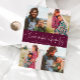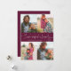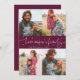 Modern and elegant Valentine's Day photo template card featuring 4 pictures with a hand written script text that says "Love makes a family" with hearts. You can add another picture and a message on the back of the card. Cranberry.