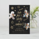 Belle carte de vacances unique à thème de la cuisine de vacances en famille photo vacances. Notre design comprend des cadres photo de Noël amusants découpeurs de biscuits pour afficher 3 de vos souvenirs de photos de famille préférés. "Love Joy & many of cookies" est conçu dans une police de script de brosse moderne. Des icônes amusantes sur le thème de la pâtisserie : mélange de bol, de biscuit, de whisky, de pain d'épices, de casquette cuisinier et de cuillère, sont éparpillées un peu partout. L'envers est doté d'un motif de cuisson au faux-or qui s'ajoute. Toutes les illustrations sont dessinées à la main par Moodthology Papery.