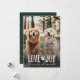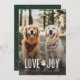 Célébrez l'esprit de la saison avec la "Love Joy Cute Dog Photo Christmas Holiday Card". Doté de deux chiens adorables, cette carte rayonne de chaleur et de joie de vacances. L'icône de la patte ajoute une touche ludique au message "Amour & Joie", parfait pour les amoureux de les chiens diffusant de joyeux voeux de Noël. Le cadre extérieur crée une atmosphère naturelle et chaleureuse, faisant de cette carte de voeux de vacances une belle façon de partager la joie de Noël avec la famille et les amis.
