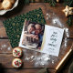 'C'est la saison de l'amour, de la joie, et beaucoup de biscuits de Noël! Nos caractéristiques de conception "Love Joy & beaucoup de cookies" est conçu dans une police de script de brosse moderne avec une photo complète pour afficher votre propre mémoire photo de famille spéciale. L'envers comprend un motif de cuisson en faux or de shimming sur un arrière - plan vert. Toutes les illustrations sont dessinées à la main par Moodthology Papery.