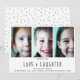 Célébrez la saison des Fêtes avec cette carte amusante avec 3 photos préférées et votre texte personnalisé. Lit actuellement "Wishing you Love & Laughter" - mais changez facilement à votre salutation. Unique et moderne, mais amusant et simple - une carte qui est sûr de livrer des sourires et des salutations spéciales de vacances.