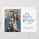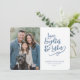 This cheerful Hanukkah template pairs a full-photo layout with a bright, modern greeting that reads “Love, Laughter & Latkes” in stylish script lettering. The design features a clean white background, soft blue accents, and customizable text beneath the message for adding your family name and the year. With its warm, inviting aesthetic and simple one-photo format, this layout offers a joyful way to share Hanukkah wishes while keeping the focus on your favorite moment of the season.