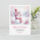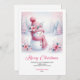 Celebrate the season with this cute watercolor pink coquette snowman kids Christmas card, set in a magical snowy forest. Editable text lets you personalize instantly, and the digital download provides an easy, fast, and festive holiday greeting.