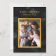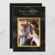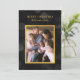 Cette carte de vœux de vacances photo présente votre photo et les mots "Joyeux Noël" en faux papier d'or sur un fond à motif de lumières bokeh foncées. La carte a un fond gris foncé au verso.