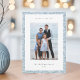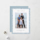 Partagez vos salutations de vacances avec ces cartes photos Hanoukka modernes et élégants avec votre ensemble photo préféré sur un arrière - plan de flocons de neige et branches d'hiver en blanc sur bleu pâle glacé. Une zone de message modifiable vous permet de customiser votre Chanukah ou votre salutation de vacances. Ajoutez votre nom de famille ou vos noms en dessous, ainsi que l'année.