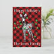 Conception de vacances de zèbre festif - Lumières scintillantes rouges et vertes - Carreaux tartan rouge et noir - personnalisable.