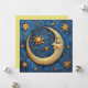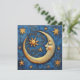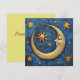 Une jolie carte de vacances céleste. Le devant est une lune de contenu et des étoiles avec un joli arrière - plan bleu. Le dos dit : Paix sur Terre. C'est une carte à deux faces.