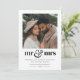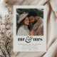 Cette carte de vacances est conçue pour les jeunes mariés qui célèbrent leur premier Noël de mariage, alliant simplicité moderne et charme saisonnier. Elle comporte une photo carrée que vous pouvez télécharger pour mettre en valeur votre moment préféré ensemble. La phrase "mr & mrs" dans une conception typographique audacieuse est accompagnée d'un cœur délicat à côté. En dessous, vos vœux de vacances personnalisés sont affichés avec élégance dans deux polices complémentaires, ainsi que l'année le long du bas, créant un souvenir intemporel.