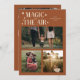 Elegant holiday card featuring a text that says "magic in the air" with 3 photos on the front. Add another photo on the back along with your message. Background is terracotta.