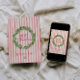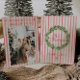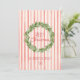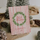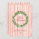 Si vous cherchez une carte de Noël simple minimaliste, belle et facile à modifier. Celui-ci est parfait pour vous. Et comme vous voyez le design comporte une couronne de Noël verte faite à la main et dessinée avec une typographie de MERRY CHRISTMAS. Et ton nom de famille et ton année en bas. Et dans le dos vous avez un paragraphe de voeux de Noël personnalisable et une photo de famille. Le tout sur des rayures arrière - plans crème et rouges.
