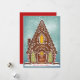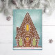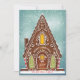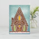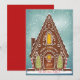 Illustration originale d'une maison en pain d'épice enneigée avec des biscuits et des détails sur la glace royale. Salutation modifiable; ajoutez votre propre message ou photo à l'arrière.