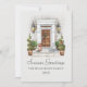 Cette élégante carte Joyeuses Fêtes d'aquarelle présente un beau chien de type cocker spaniel assis devant une porte élégante, entouré d'un topiaire et d'un feuillage festifs et le plus mignon petit oiseau Red Cardinal. Le devant est en Joyeuses Fêtes. Customisez l'accueil, ajoutez votre nom de famille et l'année (ou laissez vide si vous préférez). Le dos a été laissé vide pour tout message personnel que vous souhaitez écrire.
