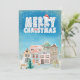 Cette scène festive d'un village d'hiver avec de jolies maisons dans la neige est comme nous aimons imaginer la magie de Noël. La typographie Joyeux Noël sur le devant est dans un grand style moderne avec un casquette de Noël et motif de cravate arc rouge et blanc pour une bonne mesure! Au fond, la même scène gelée sert d'arrière - plan à un bloc de couleurs coordonné où se trouve votre salutation et vos noms. Ce texte peut être facilement personnalisé et vous pouvez également modifier cette police et cette couleur si vous le souhaitez via l'option Cliquer pour Customiser plus.