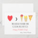 Une carte de Fête des mères amusante pour maman, avec un cœur rouge et un cornet de glace, une part de pizza et un paquet de frites avec le message "Je t'aime plus que la glace, les frites et la pizza !". Une carte de Fête des mères mignonne pour maman de la part des enfants. Personnalisez-la avec les noms des enfants.