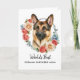 Célébrez la fête des mères avec cette carte magnifiquement conçue, parfaite pour une maman de berger allemand qui adore son compagnon à quatre pattes. Avec un superbe portrait à l'aquarelle d'un berger allemand, entouré d'élégants accents floraux, ce design sincère capture le lien spécial entre un parent d'animal et son chien loyal.