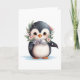 Cartes Pour Fêtes Annuelles Manchot Mignon Avec Écharpe et Houx VIDE