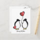 Pingouin mignon personnalisé enregistrer la date mariage cartes postales illustrées. Parfait pour un couple à envoyer avant leur grand rendez-vous. Le dessin montre un manchot de marié tenant un ballon rouge au coeur. Les noms affichés, la date du mariage et le retour peuvent tous être changés avec la fonction personnalisée.