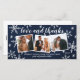 Partagez l'amour pendant cette période des fêtes avec cette carte de vœux photo de vacances entièrement personnalisée avec une carte de remerciement pour jeunes mariés. Elle comporte 3 photos et des flocons de neige dessinés à la main et un fond à effet texturé navy.