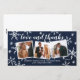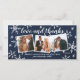 Partagez l'amour pendant cette période des fêtes avec cette carte de vœux personnalisée avec une carte de remerciement pour jeunes mariés. Elle comporte 3 photos et des flocons de neige dessinés à la main sur fond à effet texturé navy.