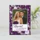 Ces beaux cartes de fin de année sont conçus pour un couple célébrant ses premiers jours de vacances en couple. Le design présente votre photo sur un arrière - plan profond couleur prune violet entouré de roses d'aquarelle peints à la main dans les tons violet et lavande, ainsi que des flocons de neige fantaisistes et festifs. La légende dit "Marié et brillant" Joyeux Jours fériés du nouveau Mr & Mrs. L'arrière a de l'espace pour une deuxième photo ainsi qu'une note et une signature personnalisées. Merveilleuse façon d'envoyer des voeux de Noël, d'Hanoukka ou de vacances non spécifiques et des photos de mariage en même temps!