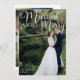Magnifique calligraphie blanche lisant Marié et Joyeux sur votre photo mariage complète pour une belle carte de vacances mariée. Cette carte de Noël de couple vient de se marier comporte un grand script cursif en haut. Ajoutez une 2ème photo de couple au dos et votre texte personnalisé.