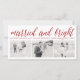 Ce faire-part mariage moderne de 8"x4" ou une première carte de noël pour le couple marié dispose de 3 photos collage sur le devant et un simple accueil de Noël qui dit 'Marié et brillant' dans un script de calligraphie rouge et tendance festif. Le verso de la carte est laissé vide pour votre propre message. Illustration de fat*fa*tin. Facile à personnaliser avec votre propre message texte, nom, année, photo ou image. D'autres fonctions d'édition sont disponibles sur la page "modifier la conception". www.zazzle.com/fat_fa_tin www.zazzle.com/color_therapy www.zazzle.com/fatfatin_blue_knot www.zazzle.com/fatfatin_red_knot www.zazzle.com/fatfatin_mini_me www.zazzle.com/fatfatin_box www.zazzle.com/fatfatin_design www.zazzle.com/fatfatin_ink