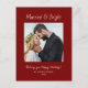 Carte postale Joyeuse et brillante de Noël rouge nouvellement mariée avec et simple design photo et typographie. Avec le lettrage personnalisable vous ajoutez votre propre texte. Vous remplacez également la photo par la vôtre pour ajouter la personnalisation. Une façon festive de souhaiter à vos proches de Joyeuses Fêtes.