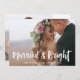 Cette simple et élégante carte de vœux de Noël pour jeunes mariés dit "Mariés & Brillant" dans une typographie moderne écrite à la main en blanc avec de la place pour votre nom sur le devant, et un message personnel au dos. La carte a de la place pour deux de vos photos de mariage préférées. La façon parfaite d'envoyer des vœux de fêtes de la part des nouveaux M. & Mme.