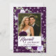 Ces belles cartes de vacances sont conçues pour un couple qui célèbre ses premières fêtes en tant que jeunes mariés. Le design présente votre photo sur un fond couleur prune profonde entourée de roses peintes à la main à l'aquarelle dans des tons de pourpre et de lavande ainsi que des flocons de neige fantaisistes et festifs. La légende indique "Mariés et lumineux" Joyeuses Fêtes du nouveau M. et Mme. Le dos comporte un espace pour une deuxième photo ainsi qu'un message personnalisé et une signature. Une merveilleuse façon d'envoyer des vœux de Noël, de Hanoukka ou des fêtes non spécifiques ainsi que des photos de mariage en même temps !