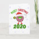 Une carte amusante avec un Père Noël Donut portant un masque facial et avec la phrase "Joyeux Noël" Un rire léger à la quarantaine et les événements de 2020. Personnalisez l'accueil avec votre libellé et ajoutez vos noms de famille personnalisés en bas. Si la date n'est pas désirée, il suffit de supprimer l'année pendant la personnalisation.