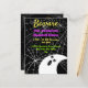 Méfiez-vous Noir avec White Spider Webs et mignon moderne Ghost Fun et convivial Fête d'Halloween / Haunted House Party. invitation par carte postale