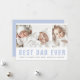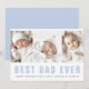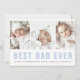 Carte de fête des pères avec trois photos personnalisées et texte de police moderne bleu clair "Meilleur papa de tous les temps" avec votre message ci-dessous sur le devant. Dos bleu clair ou couleur personnalisée. Changez les couleurs et les polices, déplacez et redimensionnez les éléments dans l'outil de conception.