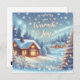Une charmante carte de vœux pour la nouvelle année souhaitant chaleur et joie pour 2025. Caractérisée par une cabane d'hiver cosy entourée d'un paysage enneigé magique, avec des étoiles et des flocons de neige ajoutant une touche festive