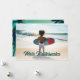 Vous cherchez des cartes de Noël à thème plage à envoyer à la famille et aux amis? Ces cartes photos sont parfaits ! Ils disposent d'un modèle photo horizontal à fond saigné et de la typographie moderne lisant "Mele Kalikimaka." Il y a une superposition en dégradé blanc vers le bas qui permet au texte de se démarquer. Il peut être ajusté selon les besoins dans l'outil de personnalisation. La couleur du texte peut également être customisée, si désiré. Le dos de la carte est orné d'un tableau de palmiers coloré.