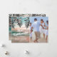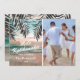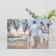 Carte de vœux de vacances joyeux Noël hawaïenne présentant une photo de votre famille, les mots "mele kalikimaka", un fond de plage, des feuilles de palmier et des guirlandes lumineuses.